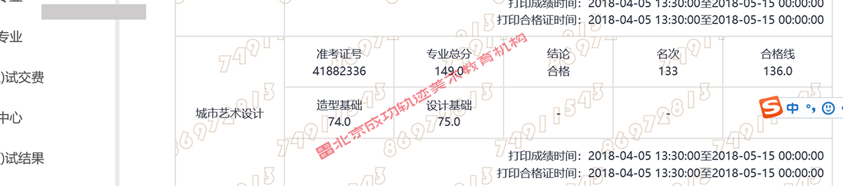 報考學校 是否通過 造型基礎 設計基礎 素描 色彩 速寫 總分 排名 準考證號 合格證 報考專業