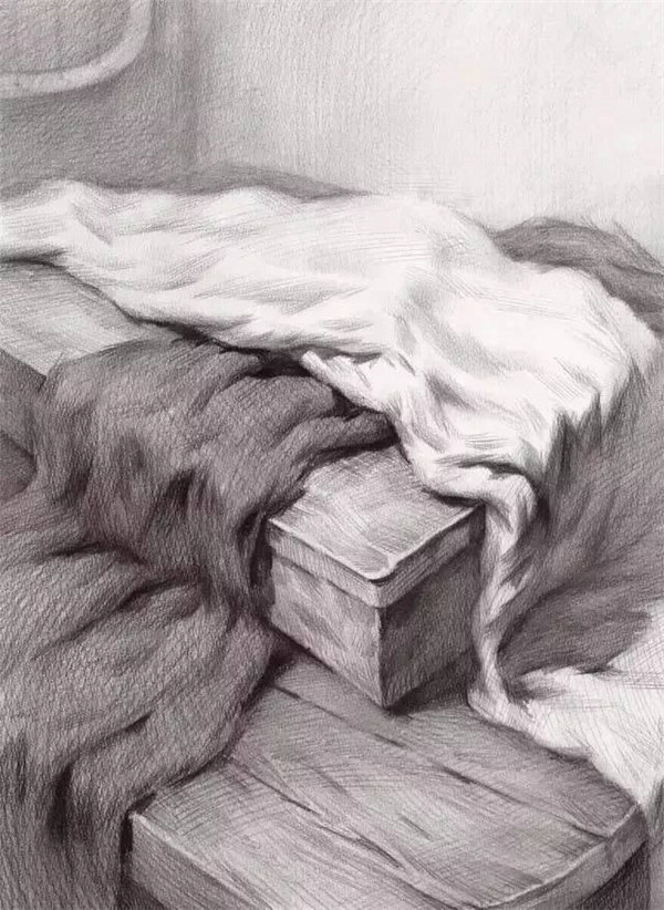 想要畫好襯布,不能徹底把襯布的造型生搬硬套到本人的畫作中,而是要加以本人的設想,描畫出襯布的明暗特性。而想要體現出襯布的明暗特性,力點就是要掌握住構造中的明暗接壤限,而后依據明暗特性,來描畫出全體的顏色變遷。
