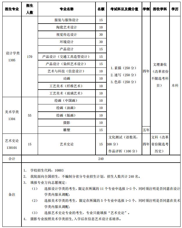 (1)設計學類及美術學類:北京市錄取人數占各專業全國招生計劃的15%,即設計學類錄取26人、美術學類錄取8人;其他省錄取人數占各專業全國招生計劃的85%,即設計學類錄取144人、美術學類錄取47人,其中每個省錄取人數設計學類不超過26人、美術學類不超過8人,超過上限的省份單獨劃定錄取線。