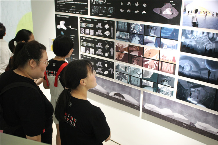 參觀7號(hào)樓展區(qū)的建筑設(shè)計(jì)作品展