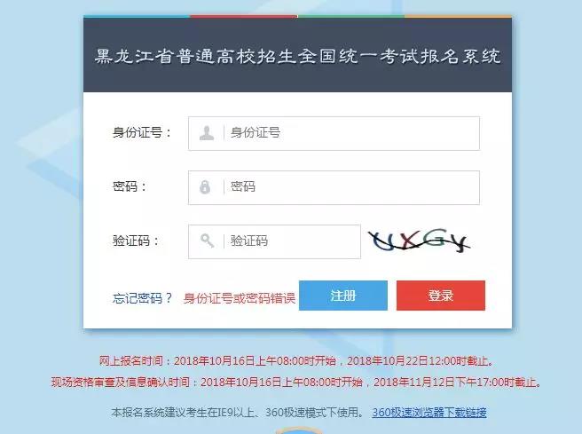 點擊后,進入黑龍江省普通高校招生全國統一考試報名系統頁面: