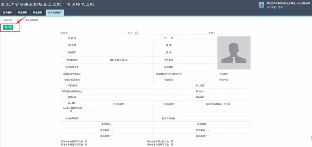 您在成功填報之后,可以在本頁面查看填報的信息,也可以在頁面的左上角選擇打印。