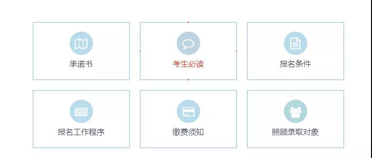 在報名通知里包括2019年高考報名的基本內容:承諾書、考生必讀、報名條件、報名工作程序、繳費須知、照顧錄取對象。