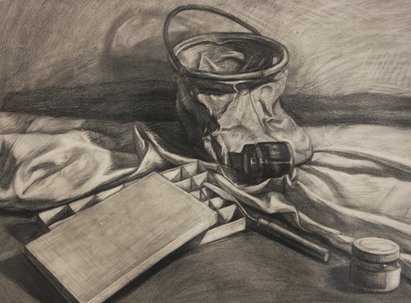 3、4B鉛筆給暗面上調(diào)子2遍(注意桌子對物體暗面有個反光,所以靠近桌子的部分會比較亮)