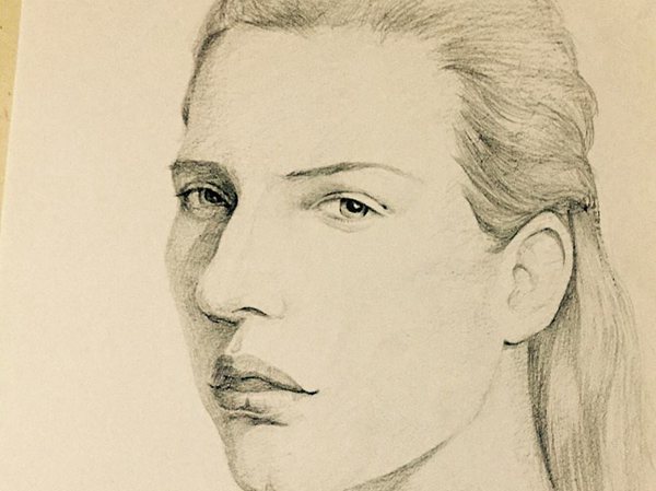 其次,找出明暗交界線后要對其進行層次的理解和結構的分析,以及明暗的虛實變化。同樣以圖中對象臉部為例,此角度和光線下對象的臉部有兩條明顯的明暗交界線線,分別是顴弓的表現和嘴部肌肉的表現,那么在處理時就要把兩處的調子加重,然后再從明暗交界線出發塑造明暗關系。