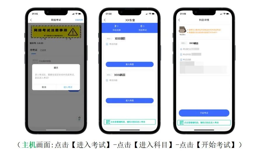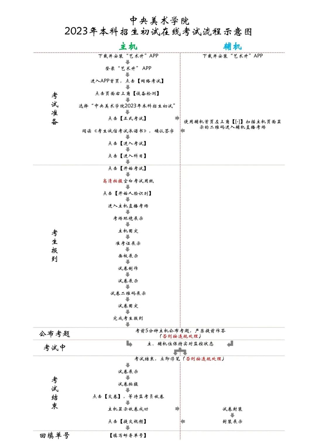 2.考試全程嚴禁考生將主、輔機離開“藝術升”APP考試界面,如切換應用、返回后臺、刪除進程、卸載APP等。